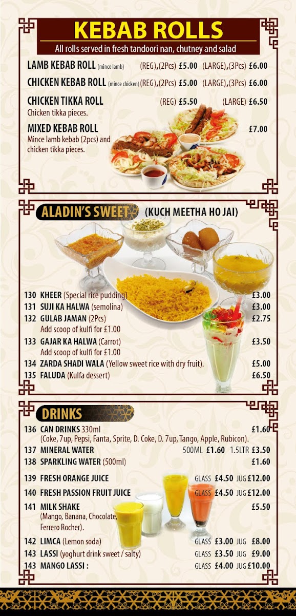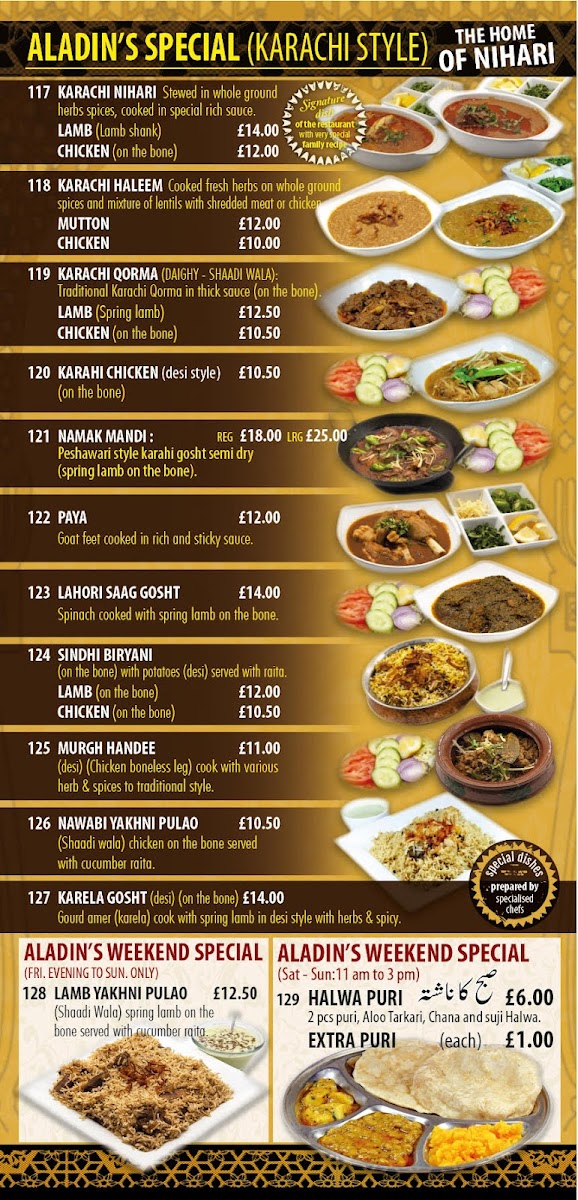 The Aladin Kebabish Menu features a range of delicious options, from traditional lamb and chicken kebabs to innovative vegetarian offerings, all prepared with the finest ingredients. The kebabs are expertly seasoned, with a perfect balance of spices that deliver just the right amount of heat and flavor. For those looking to try something unique, the mixed grill platter is a must-try, showcasing a combination of meats that are grilled to perfection, offering a satisfying variety of textures and tastes.